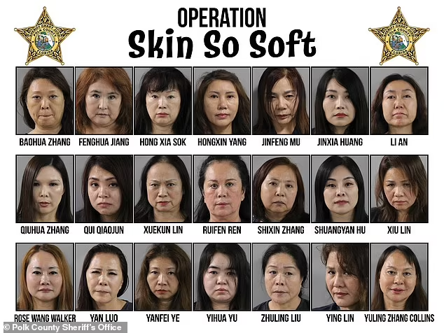 A group of massage therapists in Florida have been arrested amid claims they offered to perform sex acts to undercover detectives during a two-day sting dubbed ‘Operation Skin So Soft’.