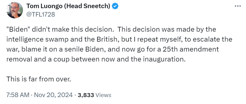 Could be, who knows? Maybe the people at the top know or think they do. These are super elite comitatus KOBK decisions that have nothing to do with anyone but them. Putin knows this and is probably assessing Russia’s best assessment of who actually controls the West and who actually made the decision to use the missiles. Is it to keep Trump from becoming president or is it to prepare Russia for a Trump presidency with some hard facts in the air? ABN