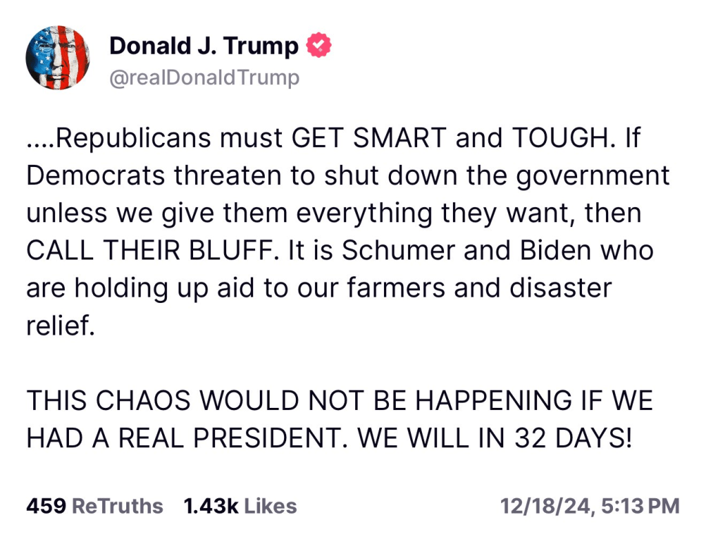 CALL THEIR BLUFF — Trump on Dems 1,500 page ‘Continuing Resolution’