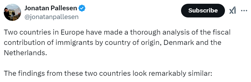 Immigrant contributions to Europe compared January 16, 2025January 16, 2025 ~ ABN Share this: Share on Reddit (Opens in new window) Reddit Share on X (Opens in new window) X Share on Facebook (Opens in new window) Facebook Share on LinkedIn (Opens in new window) LinkedIn Email a link to a friend (Opens in new window) Email Print (Opens in new window) Print Like Loading... Related Published by ABN View all posts by ABN