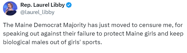 Censured because she disagrees with their nonsense. The left is absurd and tends to become dictatorial. Historically, leftist dictatorships have always been worse than rightist authoritarians. Surely males in female sports can openly be discussed? Not in Mills’ Maine. ABN