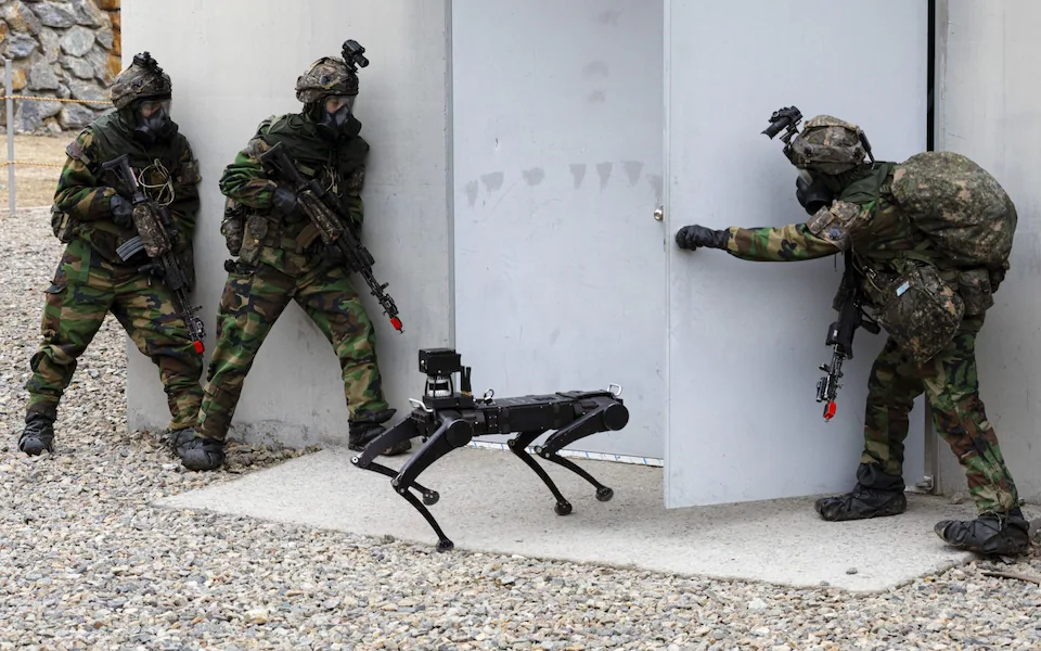 Robotic dogs could be deployed in underground tunnels to help defeat North Korean troops in battle.