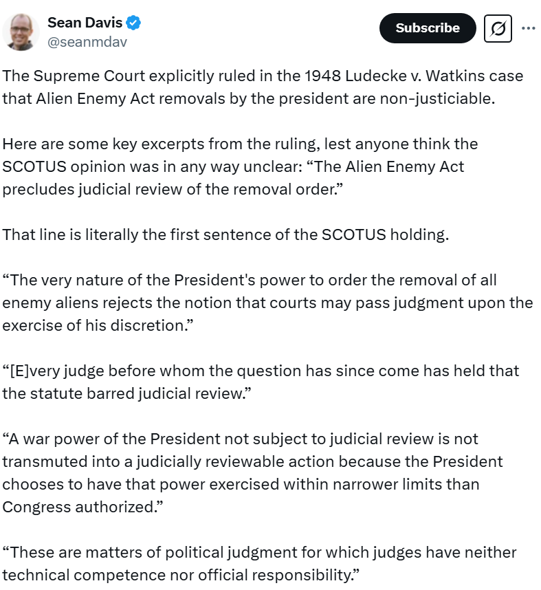 ‘These are matters of political judgment for which judges have neither technical competence nor official responsibility’ — SCOTUS ruling of 1948