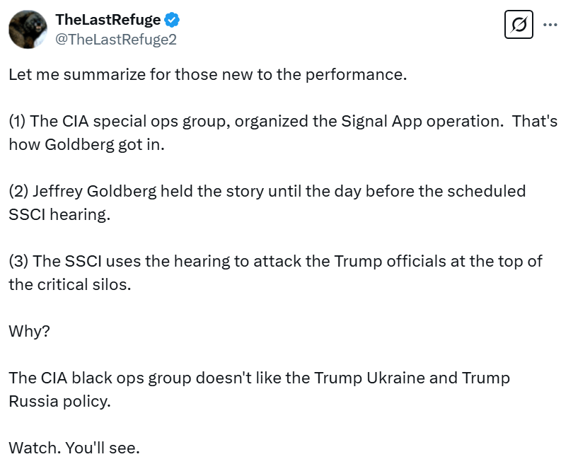 The CIA special ops group organized the Signal App operation March 25, 2025March 25, 2025 ~ ABN UPDATE: CIA Director John Radcliffe on the Signal app flap: Moreover, it is obvious that both CIA and Mossad can access Signal through backdoors. Probably many others as well. There is no guaranteed privacy online. ABN Share this: Share on Reddit (Opens in new window) Reddit Share on X (Opens in new window) X Share on Facebook (Opens in new window) Facebook Share on LinkedIn (Opens in new window) LinkedIn Email a link to a friend (Opens in new window) Email Print (Opens in new window) Print Share on Pocket (Opens in new window) Pocket Like Loading... Related Published by ABN View all posts by ABN