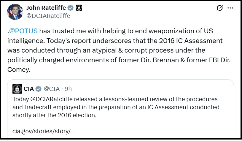 Was this the motive for the timing of the message from CIA Director John Ratcliffe?
