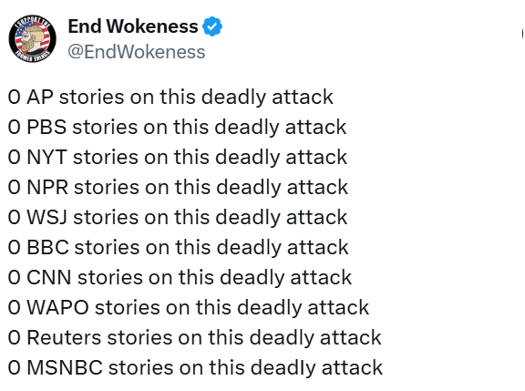 September 6, 2025September 7, 2025 ~ ABN UPDATE 09/07/25: COMPARE AND CONTRAST __________ A white man protects others and gets gets charged and vilified. A black man viciously murders a lone woman and mainstream media ignores it. ABN Share this: Click to share on Reddit (Opens in new window) Reddit Click to share on X (Opens in new window) X Click to share on Facebook (Opens in new window) Facebook Click to share on LinkedIn (Opens in new window) LinkedIn Click to email a link to a friend (Opens in new window) Email Click to print (Opens in new window) Print Click to share on Pocket (Opens in new window) Pocket Like Loading... Related Published by ABN View all posts by ABN