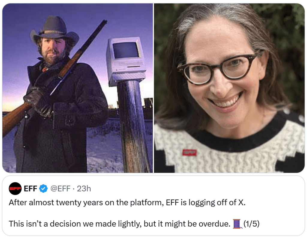 The Electronic Frontier Foundation (EFF), a non-profit group founded in 1990 by Mitch Kapor, John Gilmore, and John Perry Barlow to defend civil liberties in the digital world.