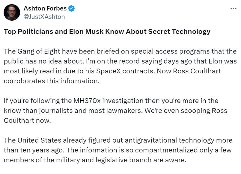 UPDATE: Very good video, well-worth viewing. It covers the MH370 incident with some new takes and also widens the discussion beyond that flight to what the technology means and where it may have come from. Lots of info in many directions with no dull sections. Ashton also laudably declares he is not looking for or taking money for his contributions, which is a good way to keep your mind clear of low interference. ABN
