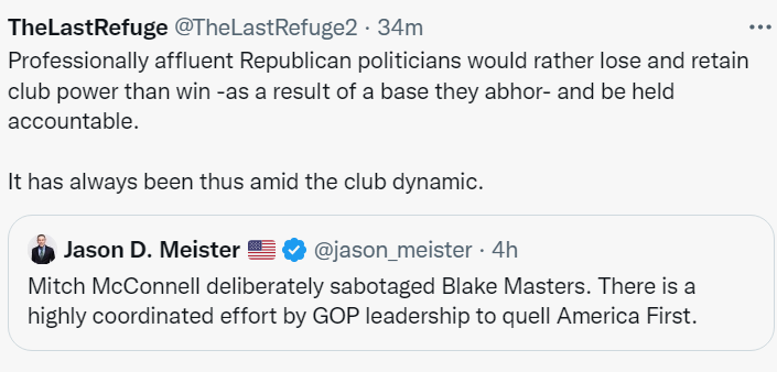 Sundance is a genius at this kind of analysis. It’s fun to read and cuts to the core all over the place. He vividly sketches the GOP campaign characters and roles they play as they gear up their pathetic game to defeat Donald Trump for the 2024 nomination. ABN