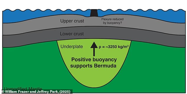 The 12.4 mile (20km) layer of rock sits underneath the ocean crust below Bermuda.