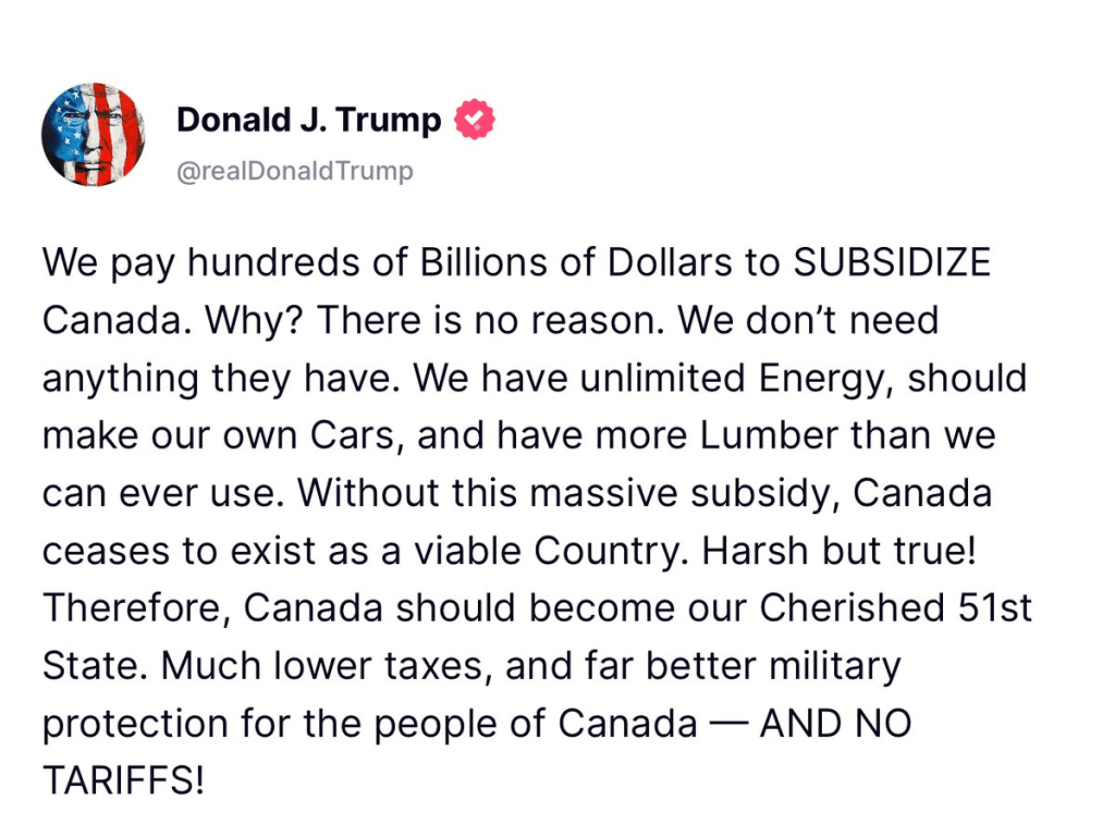 These are KOBK moves on Trump’s part. KOBK at his level of power is the ultimate rule, the ultimate game top leaders must play. Looking ahead, USA securing Canada and Greenland would benefit all three nations while also allowing USA to dominate the arctic. If USA doesn’t dominate the arctic, China or Russia will. It’s inevitable. A similar KOBK logic applies to the Panama Canal, and sadly to Trump siding with Israel’s wars. There is no way for any of us to know what Trump is taking into consideration. I suspect he is holding his nose on Israel and may have deeper plans than what we are seeing today. ABN