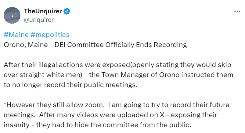 Orono Maine couches full commie mind-control as ‘welcoming environment’ while also refusing to record their deliberations