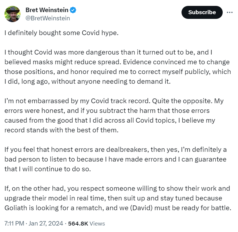 Error correction from Bret Weinstein