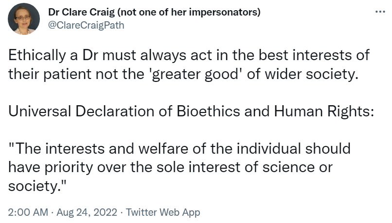 “The interests and welfare of the individual should have priority over the sole interest of science or society”
