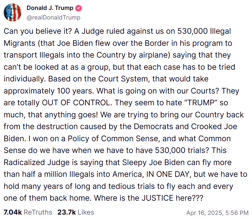 Joe Biden was not for Open Borders, he never talked about Open Borders, where criminals of all kinds, shapes, and sizes, can flow into our Country at will. It wasn’t his idea to Open the Border, and almost destroy our Country, and cost us Hundreds of Billions of Dollars to get criminals out of our Country, and go through the process we are going through now. It was the people that knew he was cognitively impaired, and that took over the Autopen. They stole the Presidency of the United States, and put us in Great Danger. This is TREASON at the Highest Level! They did it to destroy our Country. The Joe Biden that everybody knew would never allow drug dealers, gang members, and the mentally insane to come into our Country totally unchecked and unvetted. All anyone has to do is look up his record. Something very severe should happen to these Treasonous Thugs that wanted to destroy our Country, but couldn’t, because I came along. MAKE AMERICA GREAT AGAIN!