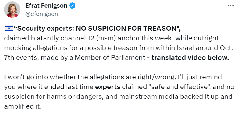 Israeli ‘security experts’ claim ‘no suspicion of treason’ on 10/07