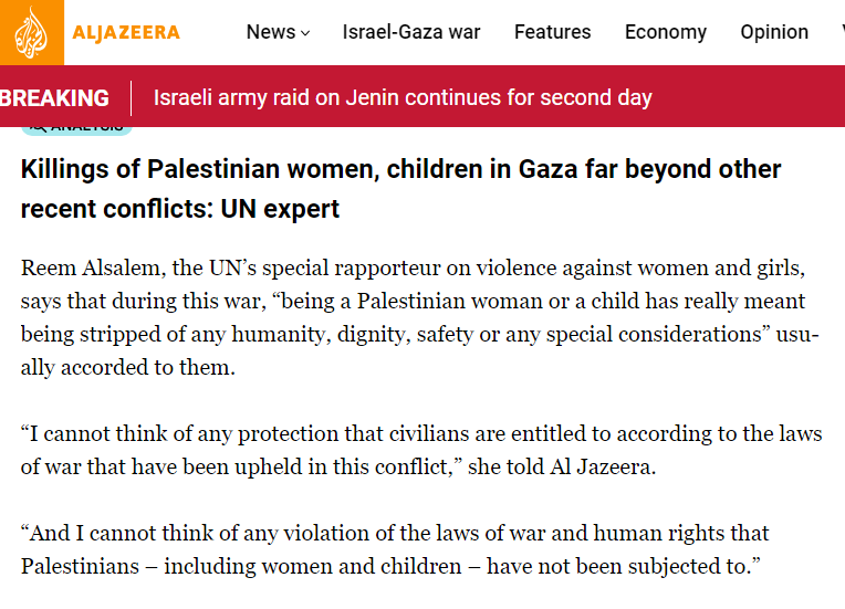 The known dead so far are estimated at almost 16,000, with a further 6,000 missing, presumably crushed under rubble. Two-thirds of those killed by Israel are women and children.